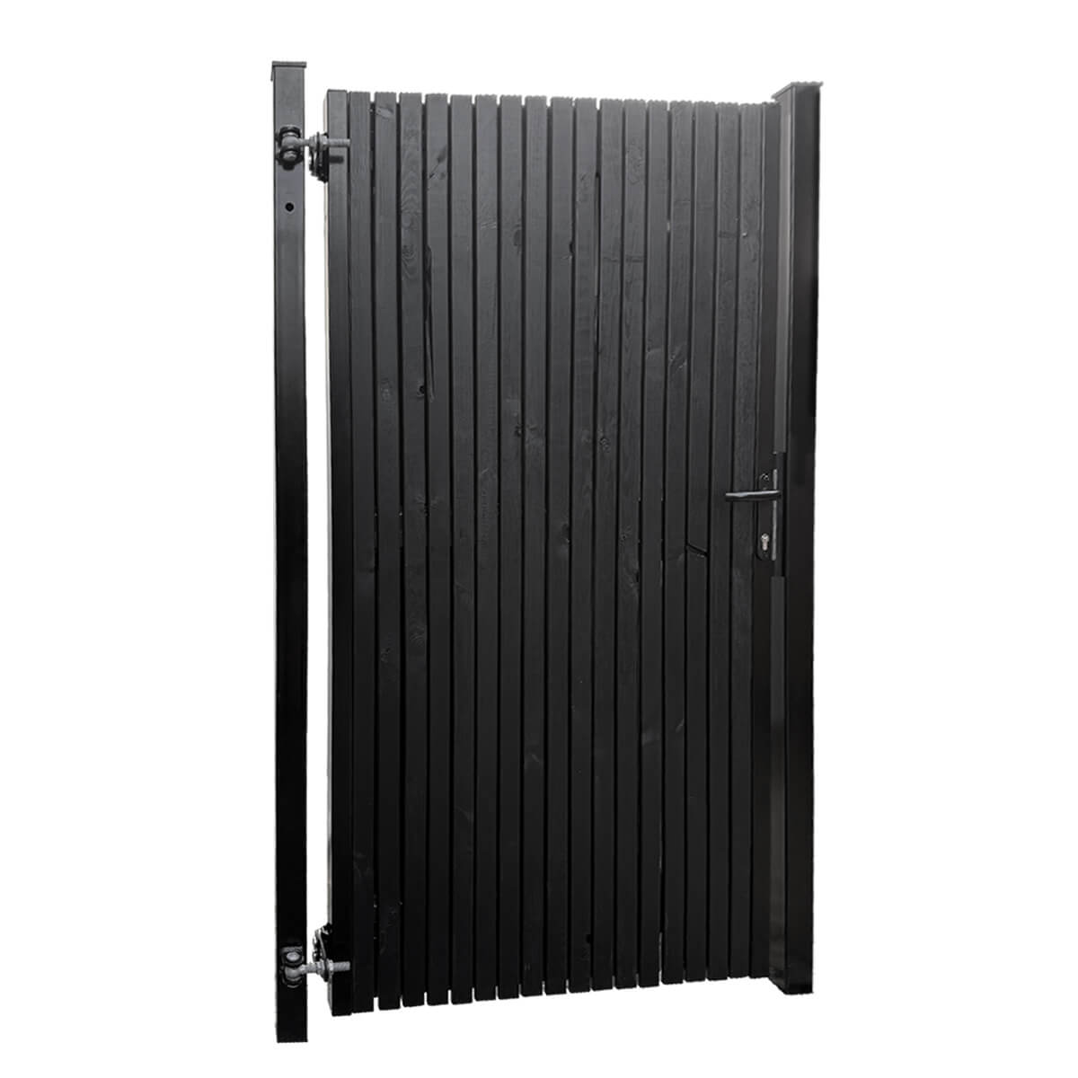 houten hekwerk tuinpoort stalen frame zwart elan 9005 180 x 100 cm vence