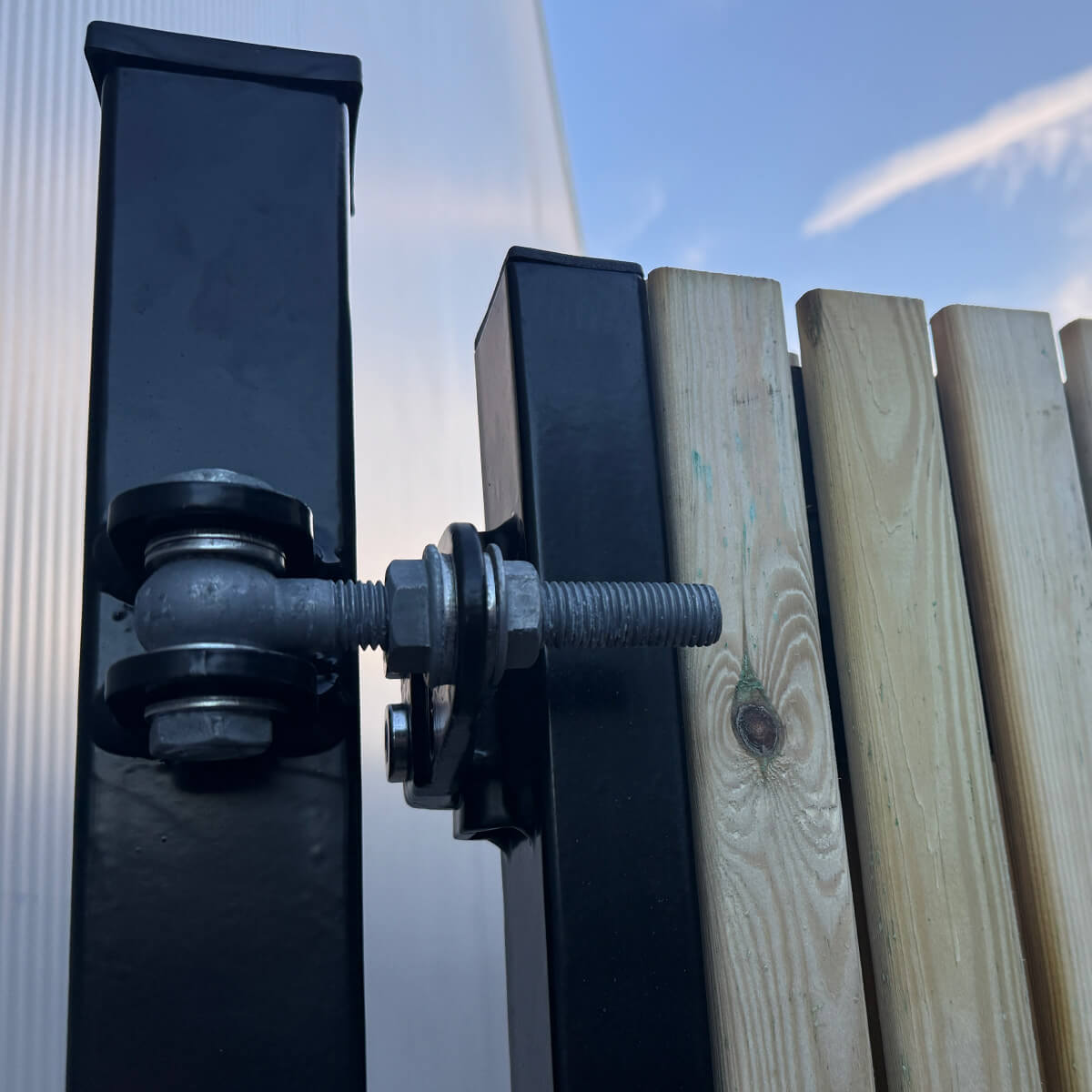 Houten hekwerk tuinpoort – Op zwart stalen frame – Grenen elan – 92 x 180 cm – Vence