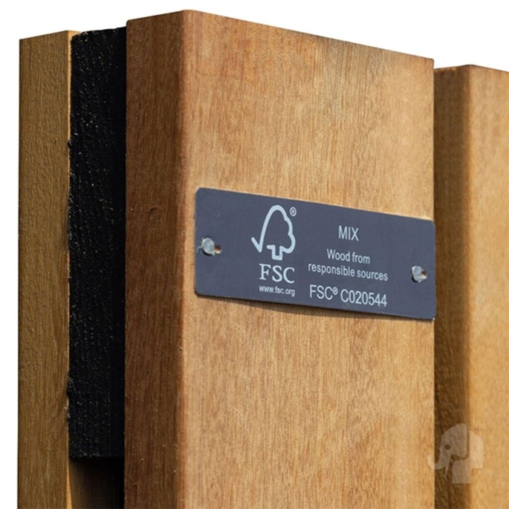 Breng een moderne en natuurlijke uitstraling in uw tuin met de Almendrillo schutting van Elephant. Deze stijlvolle schutting combineert het warme, natuurlijke karakter van hardhout met een strakke zwarte afwerking voor een eigentijdse look. Dankzij het gebruik van hoogwaardig FSC-gecertificeerd hardhout kiest u niet alleen voor duurzaamheid, maar ook voor een product dat milieuvriendelijk is geproduceerd. De planken zijn RVS geschroefd, waardoor montage eenvoudig is en de schutting jarenlang stevig blijft staan zonder roestvorming.