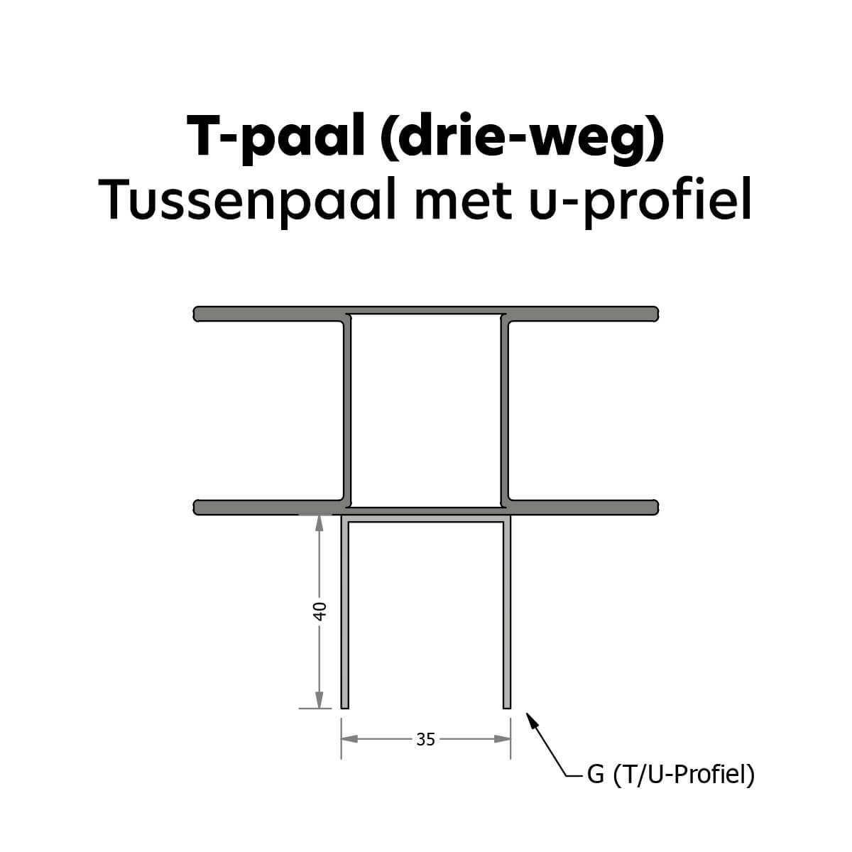 Voor het maken van een T-opstelling, waarbij drie schuttingdelen samenkomen, gebruikt u een U-profiel (ook wel T-profiel genoemd). Hiermee kunt u drie zijden stevig met elkaar verbinden, ideaal voor bijvoorbeeld een erfafscheiding met meerdere richtingen.